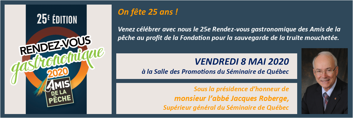 En assistant à cette soirée, vous nous aidez à initier à la pêche sportive plus de 2000 jeunes annuellement dans un cadre sécuritaire et respectueux de l'environnement. Vous contribuez également à la distribution provinciale de nos nombreux outils pédagogiques et programmes scolaires sur la truite mouchetée en plus de participer à un succulent dîner bénéfice offrant la fine gastronomie québécoise incluant les vins.
